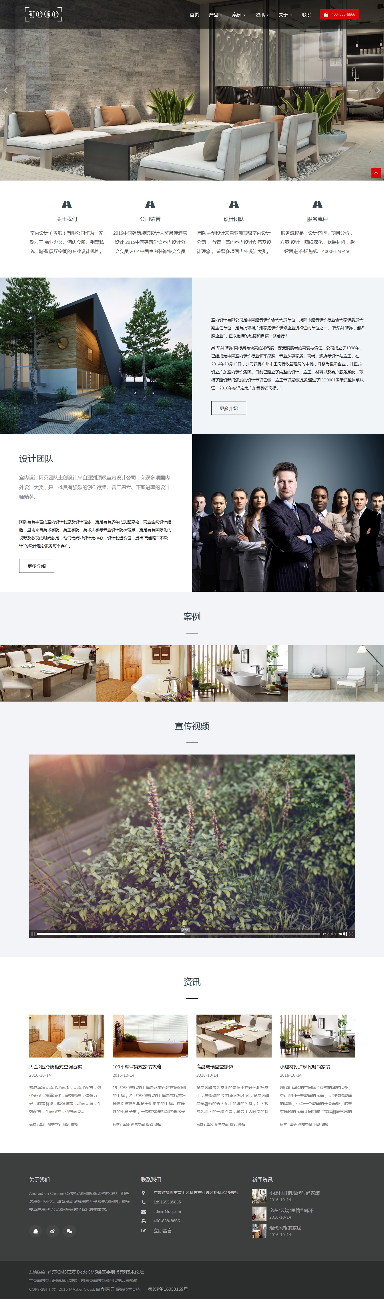 室内设计响应式 DedeCMS 网站模板(Maker Cloud 14),精简不冗余,采用 HTML5+CSS3,源码全面 SEO 优化,合理运用 H 标签/图片 alt/链接 title,兼容 IE9+/Chrome/360/Firefox/Safari/Opera 等国内外主流浏览器,黑白颜色的搭配使整个网站显得十分高端儒雅,整体风格简洁大气,以红色作为点缀让画面显得醒目,首页还特别设计了一个视频模块,更加有效的展示公司文化,模板顶部,以 banner 为背景,顶部运用了黑色透明的特效,使其反射的色光降到最低,让画面不保守而显得稳重又不失活力。