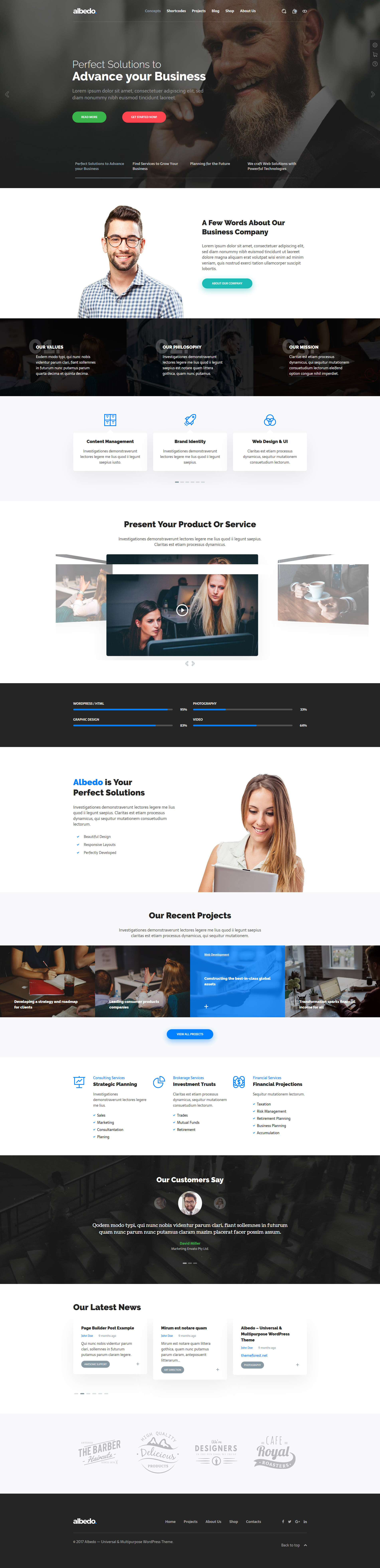 现在,我们正在开发更多的新概念,我们以自己的创意和创意而感到自豪,所以我们一直在尝试新的东西,我们很乐意听到来自我们的客户群体的反馈。直观的界面当谈到制作一个和你一样独特的网站时,Albedo 会为你做所有的努力工作。您可以使用功能强大的管理选项面板绝对自定义主题的每个元素。Aliveo 是针对 WordPress Live Customizer 和 Visual Composer 前端开发者开发的,因此您可以实时更改您的网站 – 所见即所得!亲自看看定制这个多用途主题是多么容易,以完全满足您的需求:当然,如果你无法获得足够的管理面板,Albedo 也支持标准主题选项,Visual Composer 后端编辑器,甚至是 Unyson 后端页面构建器!