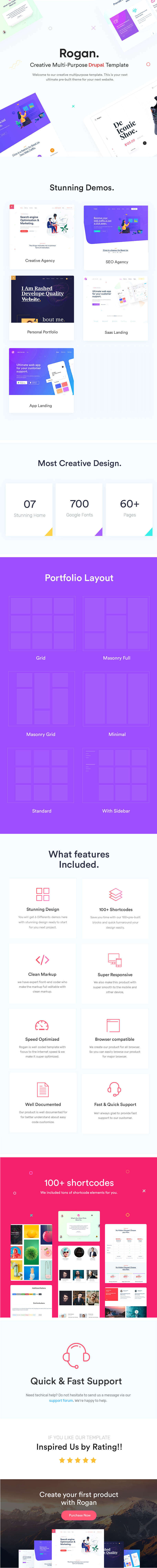 Rogan 是一个多用途的 Drupal8 主题,用于功能强大、美观和高性能的网站。该主题有 7 个主页和 66+多页演示和变种。具有惊人的插件,想法和现代网站的设计,你会很容易找到一个惊人的设计,适合你的需要。这个主题适合公司、代理、自由职业者、个人以及任何类型的企业以最具创造性和专业性的方式展示他们的公司历史、服务、作品、投资组合和项目。简而言之,它功能强大,易于使用多用途 drupal 8 模板。